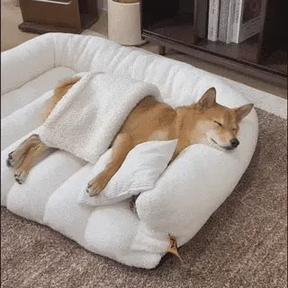 -   Bleiben Sie warm: Hergestellt aus Teddyfleece-Stoff, Ein cremefarbenes, gemütliches Schlafsofa hält Ihr Haustier warm und isoliert und sorgt dafür, dass es sich wohl und sicher fühlt.